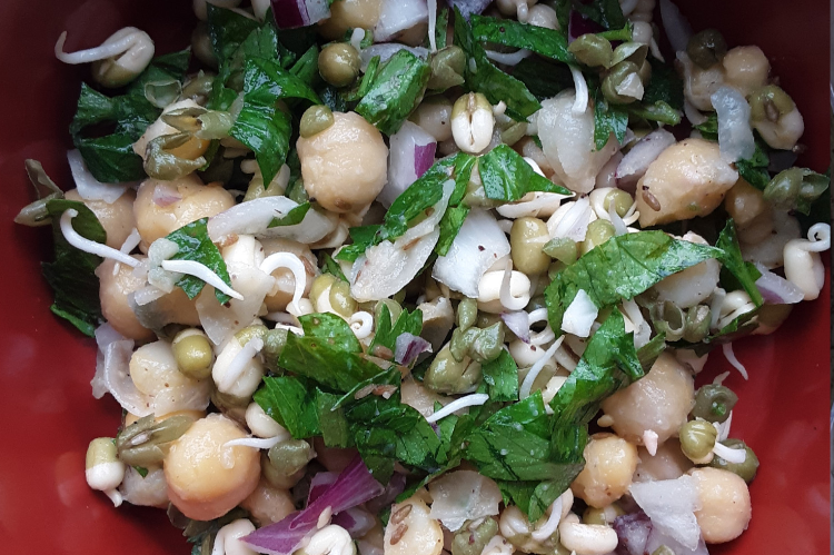 Raw Salad – Moong bean Sprouts & Chickpeas with Sumac-Lemon-Cumin dressing