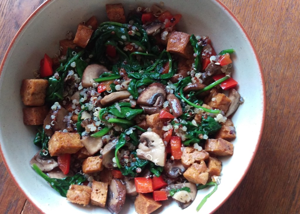 Homemade Seitan-Mushroom-Spinach-Quinoa: 1-dish-meal