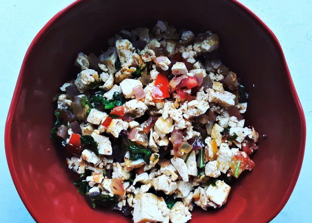 Tofu-Tomato-Onion-Cilantro Bhurji (Scramble) with Turmeric, Paprika, & Cumin Seeds